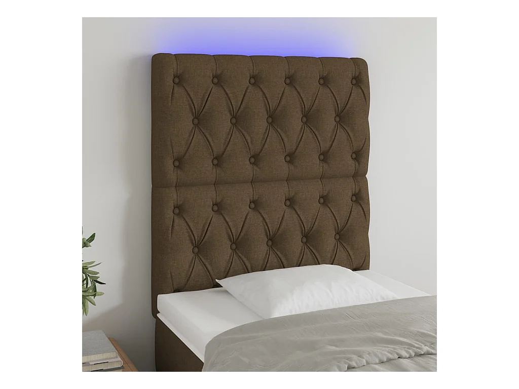 Tête de Lit | Panneau de tête pour lit Moderne à LED Marron foncé 80x5x118/128 cm Tissu