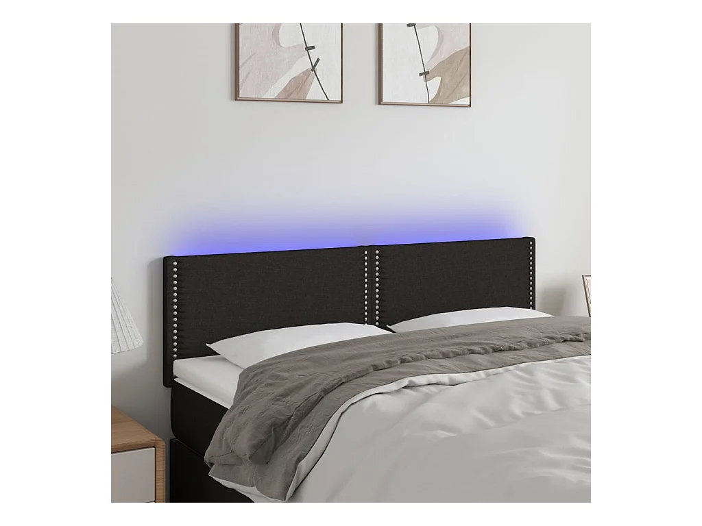 Tête de Lit | Panneau de tête pour lit Moderne à LED Noir 144x5x78/88 cm Tissu