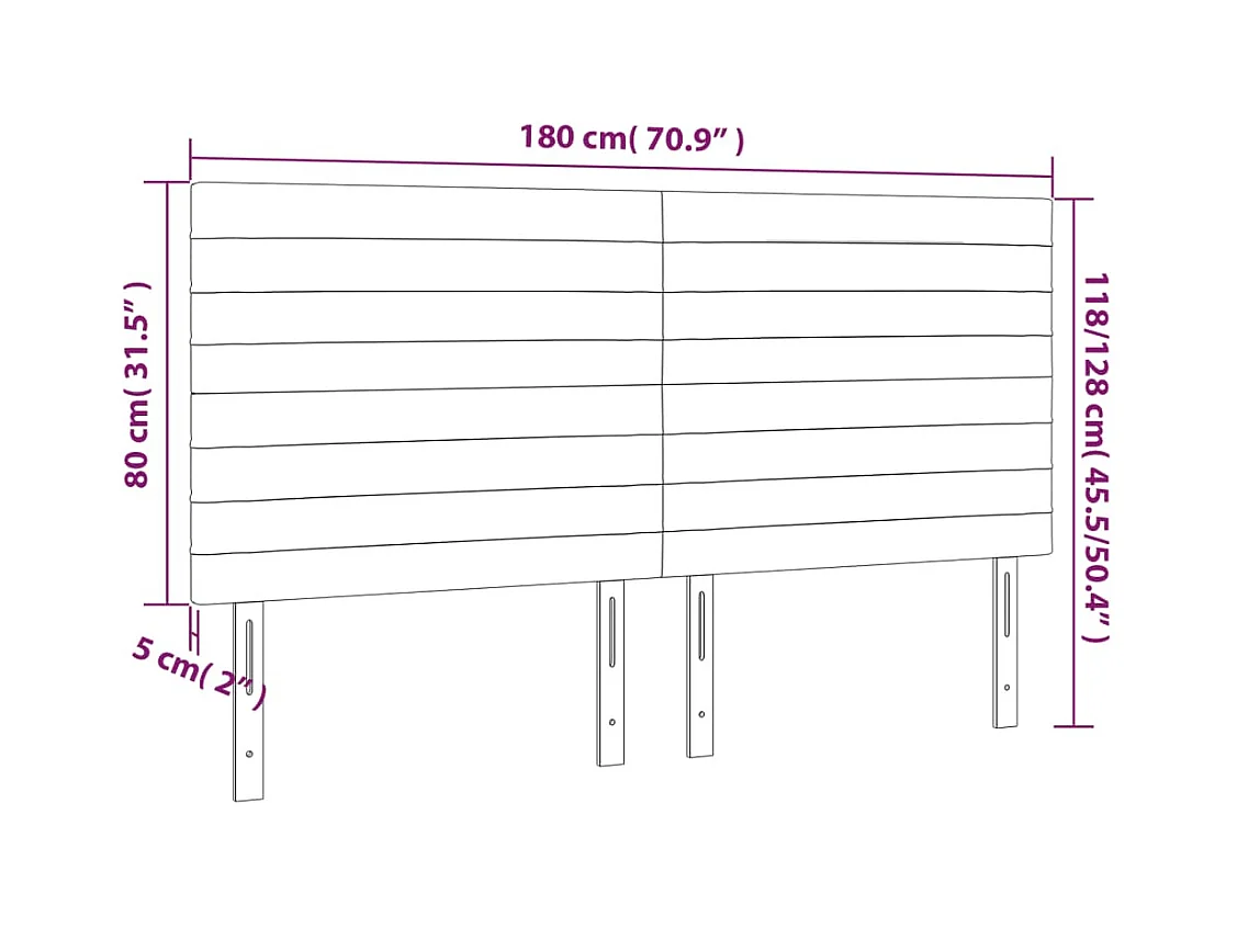 Tête de Lit | Panneau de tête pour lit Moderne à LED Noir 180x5x118/128 cm Tissu