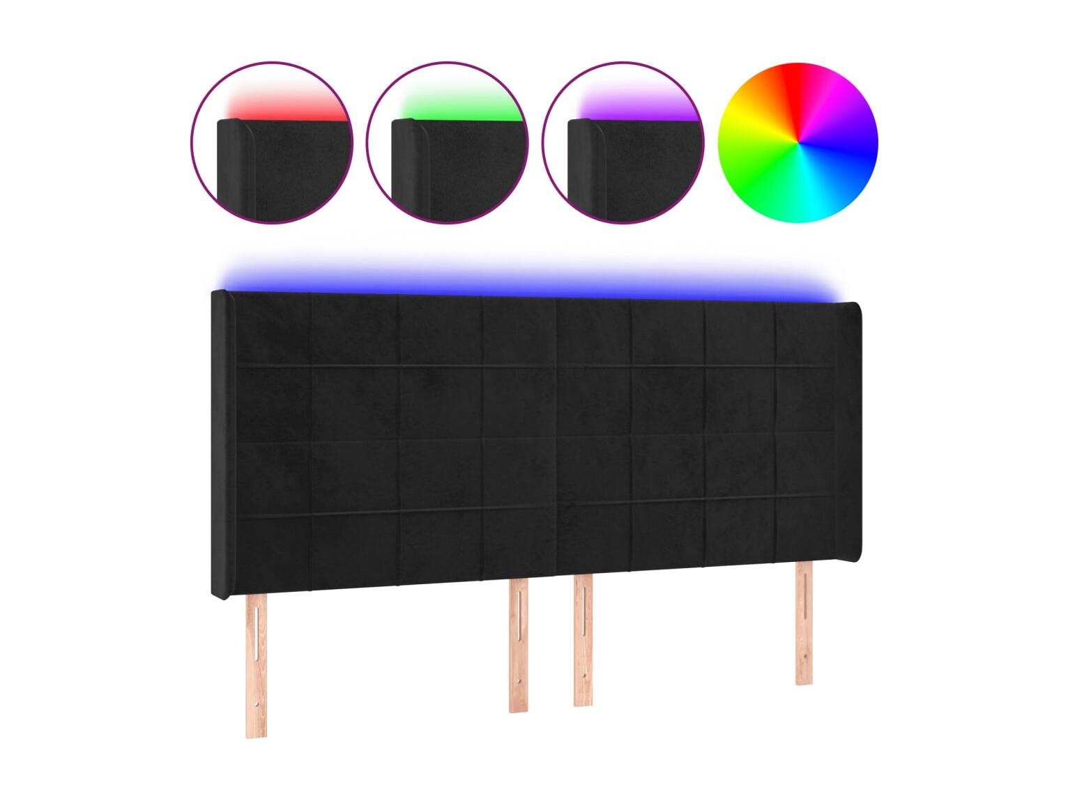Tête de Lit | Panneau de tête pour lit Moderne à LED Noir 183x16x118/128 cm Velours