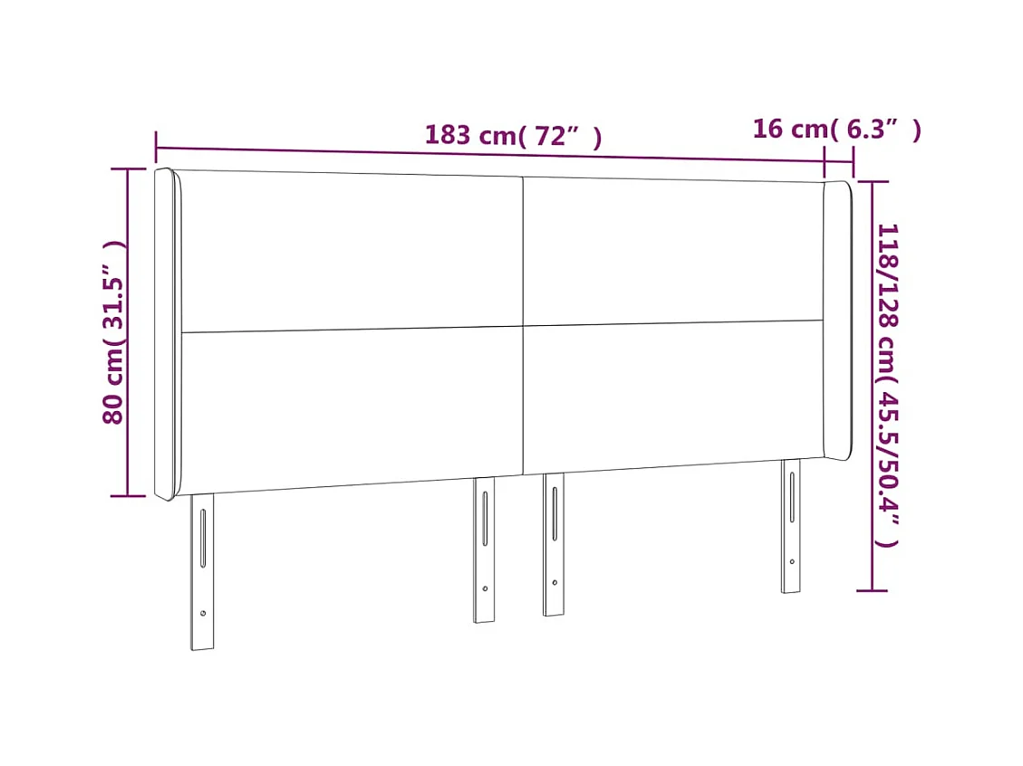 Tête de Lit | Panneau de tête pour lit Moderne à LED Noir 183x16x118/128 cm Velours