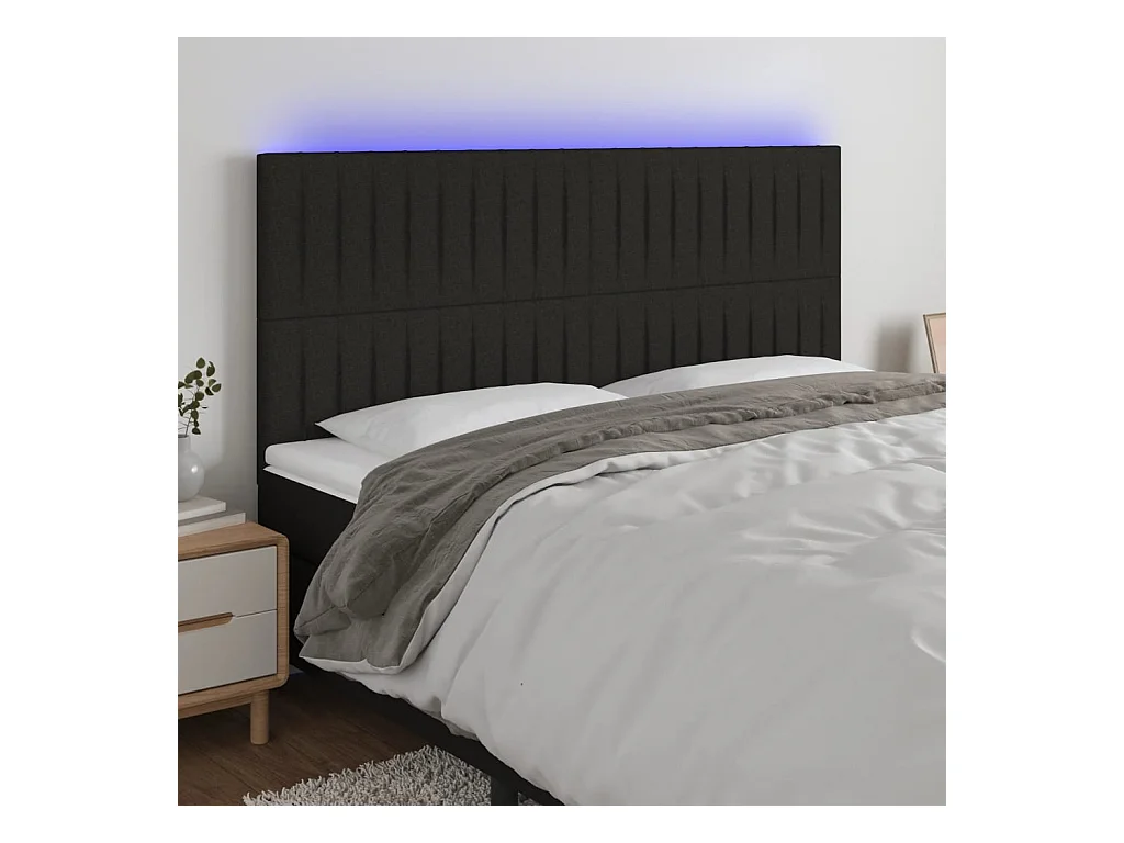 Tête de Lit | Panneau de tête pour lit Moderne à LED Noir 200x5x118/128 cm Tissu