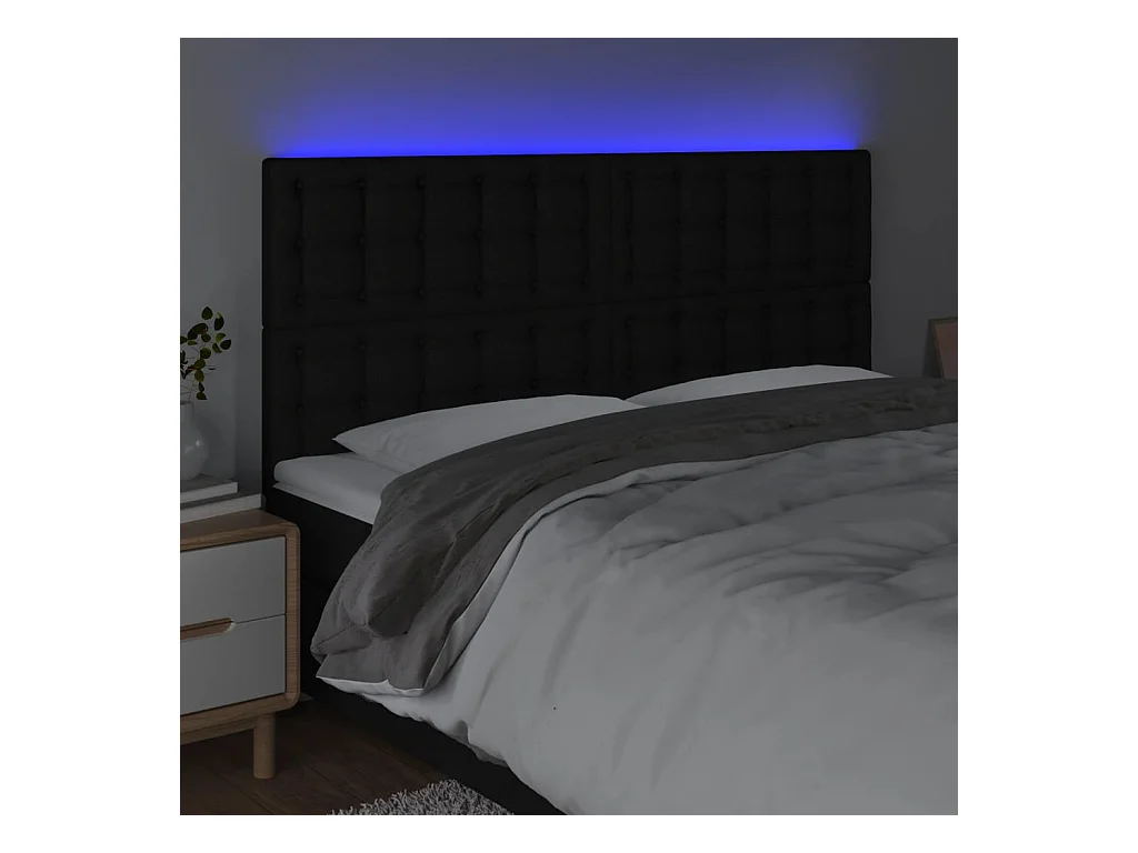 Tête de Lit | Panneau de tête pour lit Moderne à LED Noir 200x5x118/128 cm Tissu
