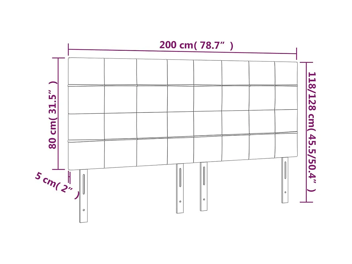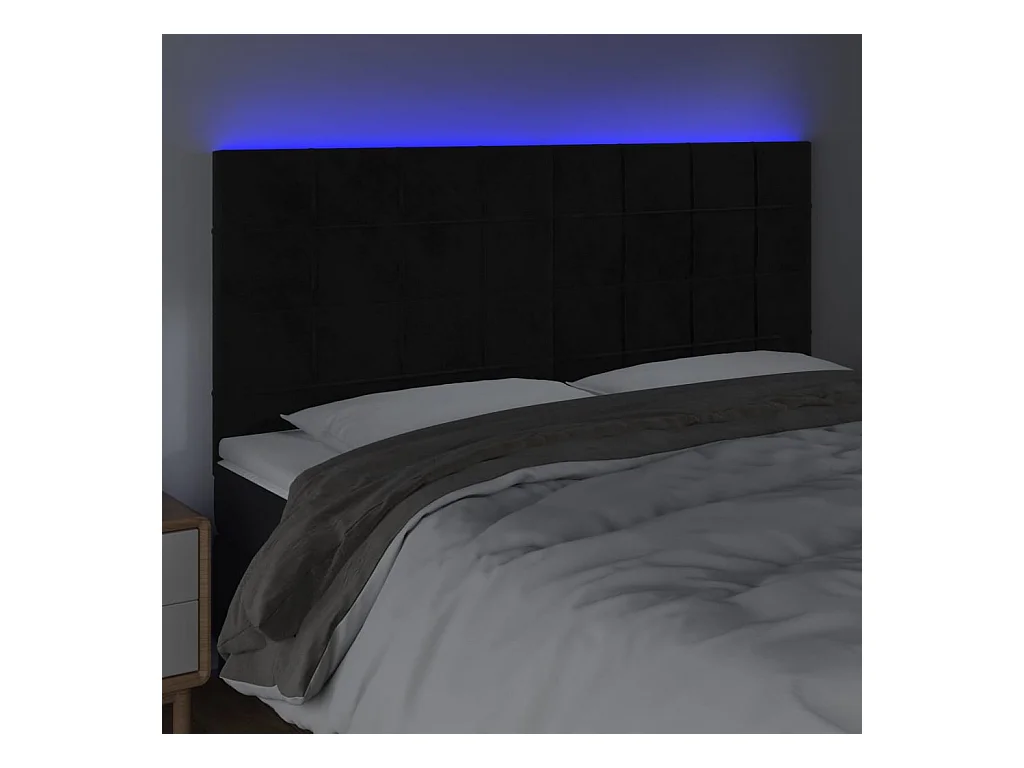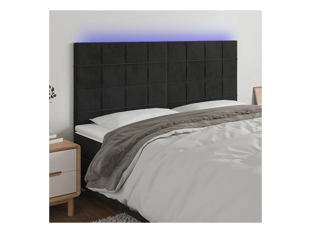 Tête de Lit | Panneau de tête pour lit Moderne à LED Noir 200x5x118/128 cm Velours