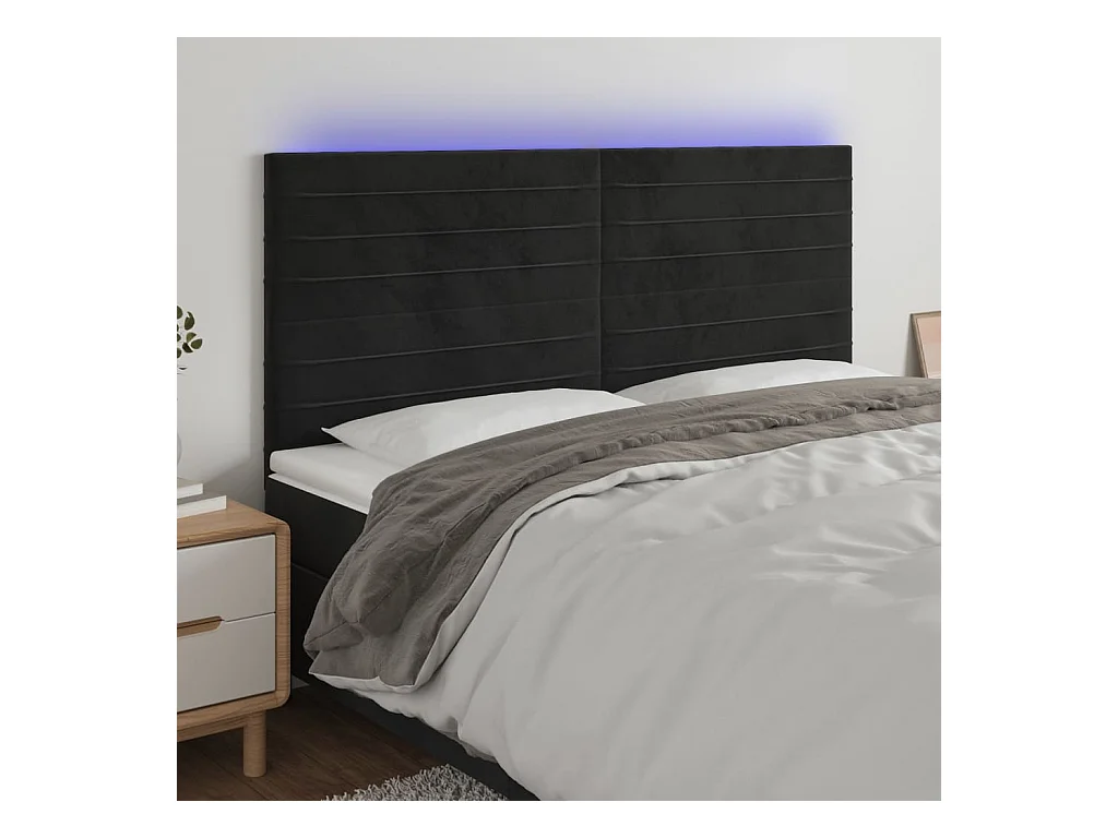 Tête de Lit | Panneau de tête pour lit Moderne à LED Noir 200x5x118/128 cm Velours