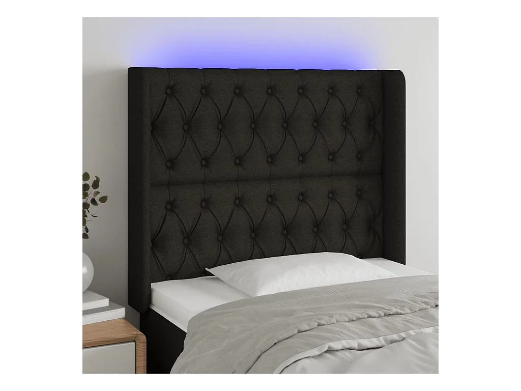 Tête de Lit | Panneau de tête pour lit Moderne à LED Noir 93x16x118/128 cm Tissu