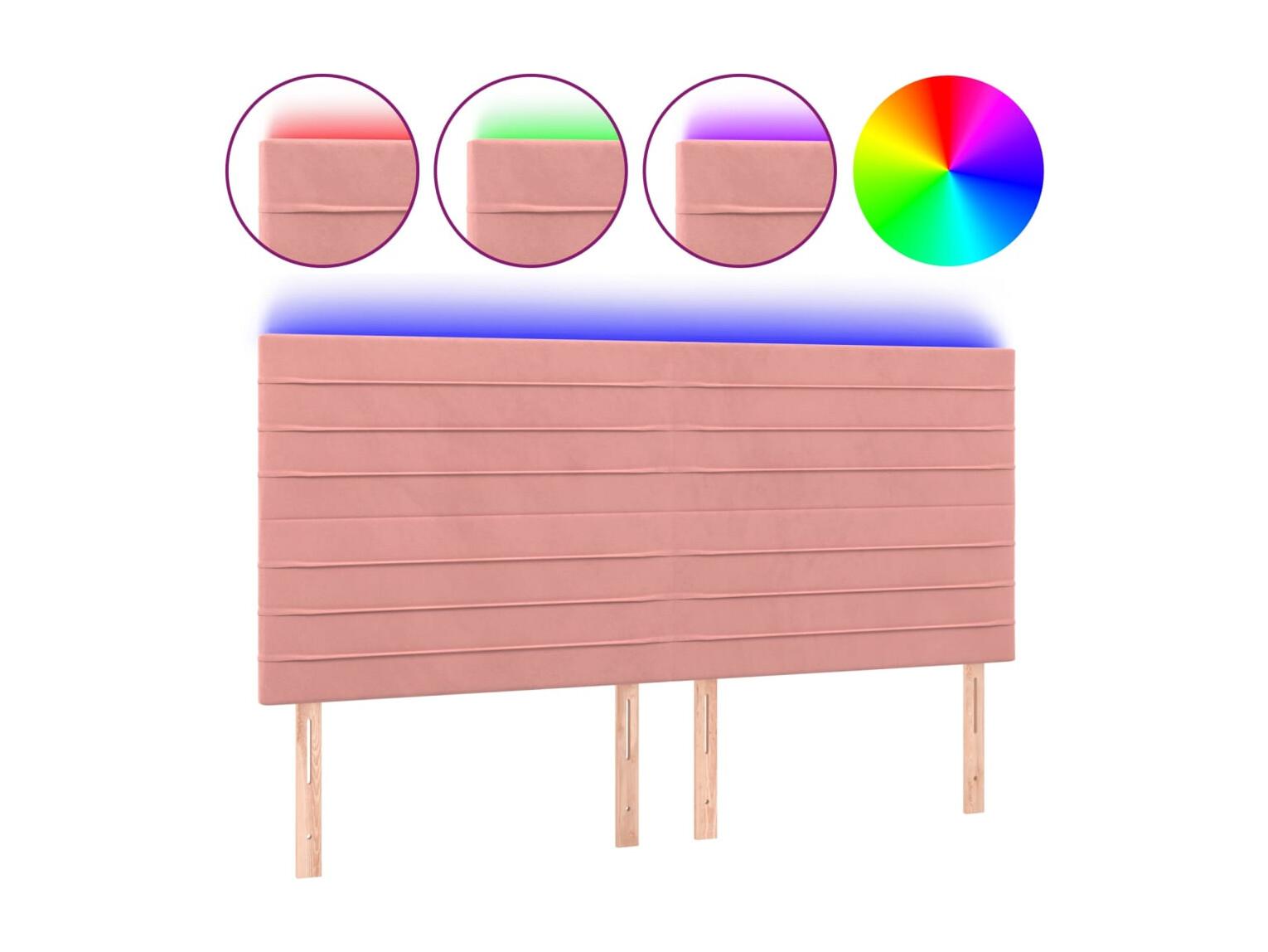 Tête de Lit | Panneau de tête pour lit Moderne à LED Rose 200x5x118/128 cm Velours