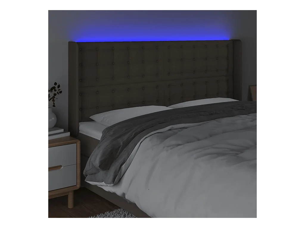 Tête de Lit | Panneau de tête pour lit Moderne à LED Taupe 163x16x118/128 cm Tissu