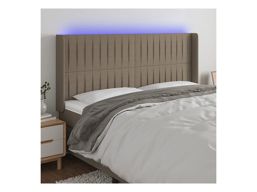 Tête de Lit | Panneau de tête pour lit Moderne à LED Taupe 203x16x118/128 cm Tissu