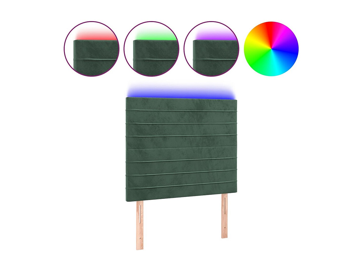 Tête de Lit | Panneau de tête pour lit Moderne à LED Vert foncé 100x5x78/88 cm Velours
