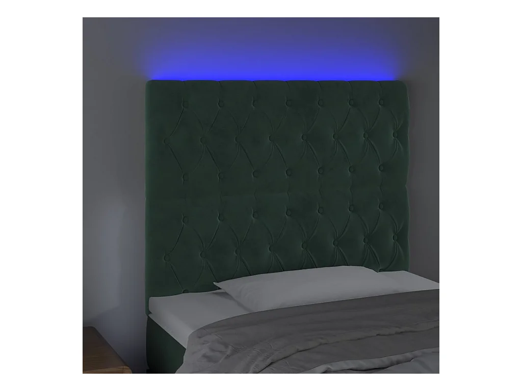 Tête de Lit | Panneau de tête pour lit Moderne à LED Vert foncé 100x7x118/128 cm Velours