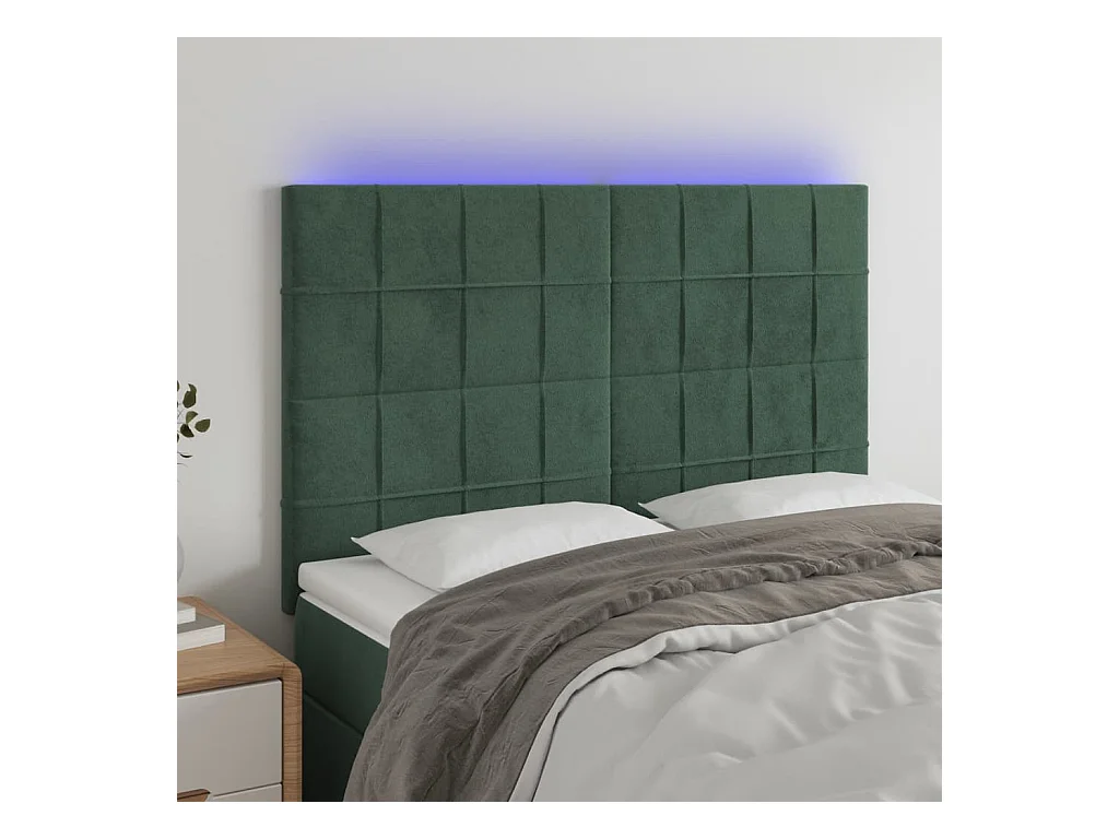 Tête de Lit | Panneau de tête pour lit Moderne à LED Vert foncé 144x5x118/128 cm Velours