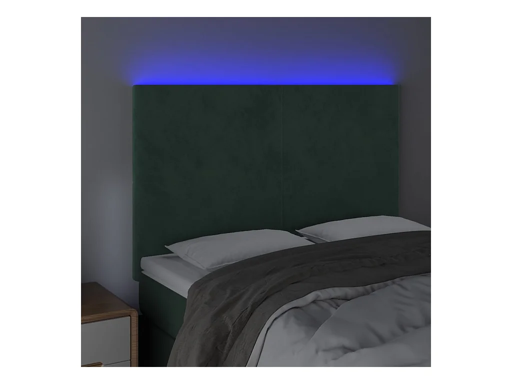 Tête de Lit | Panneau de tête pour lit Moderne à LED Vert foncé 144x5x78/88 cm Velours