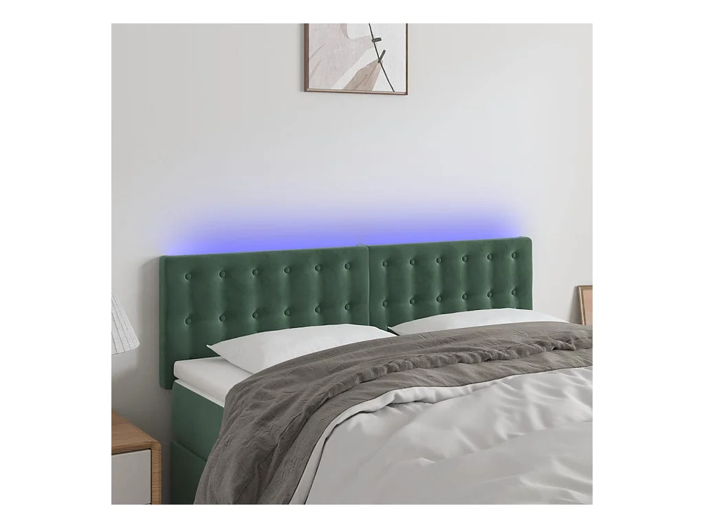 Tête de Lit | Panneau de tête pour lit Moderne à LED Vert foncé 144x5x78/88 cm Velours