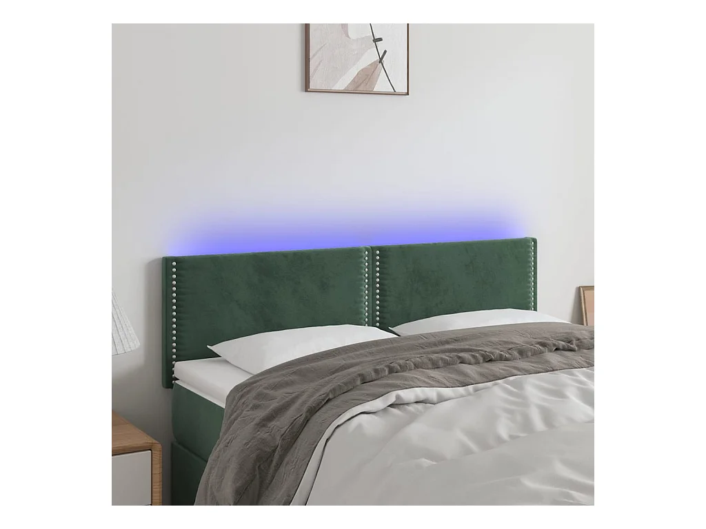 Tête de Lit | Panneau de tête pour lit Moderne à LED Vert foncé 144x5x78/88 cm Velours