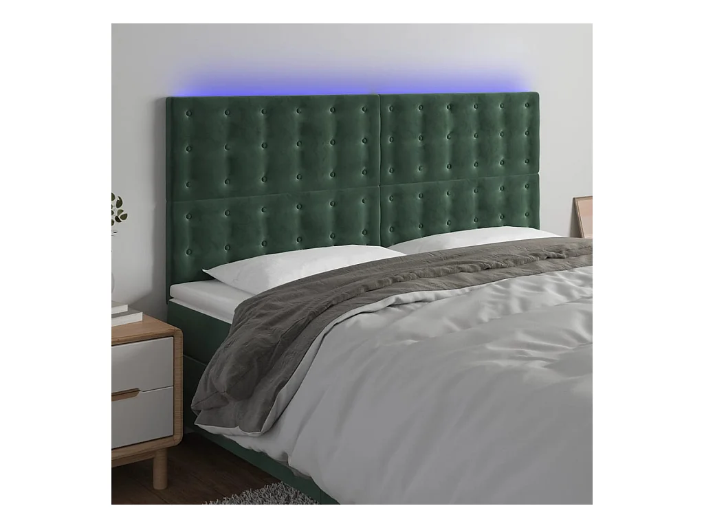 Tête de Lit | Panneau de tête pour lit Moderne à LED Vert foncé 200x5x118/128 cm Velours