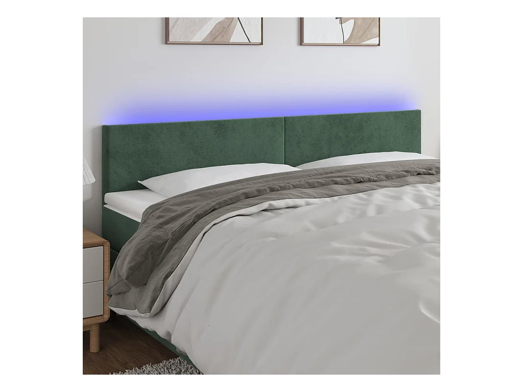 Tête de Lit | Panneau de tête pour lit Moderne à LED Vert foncé 200x5x78/88 cm Velours