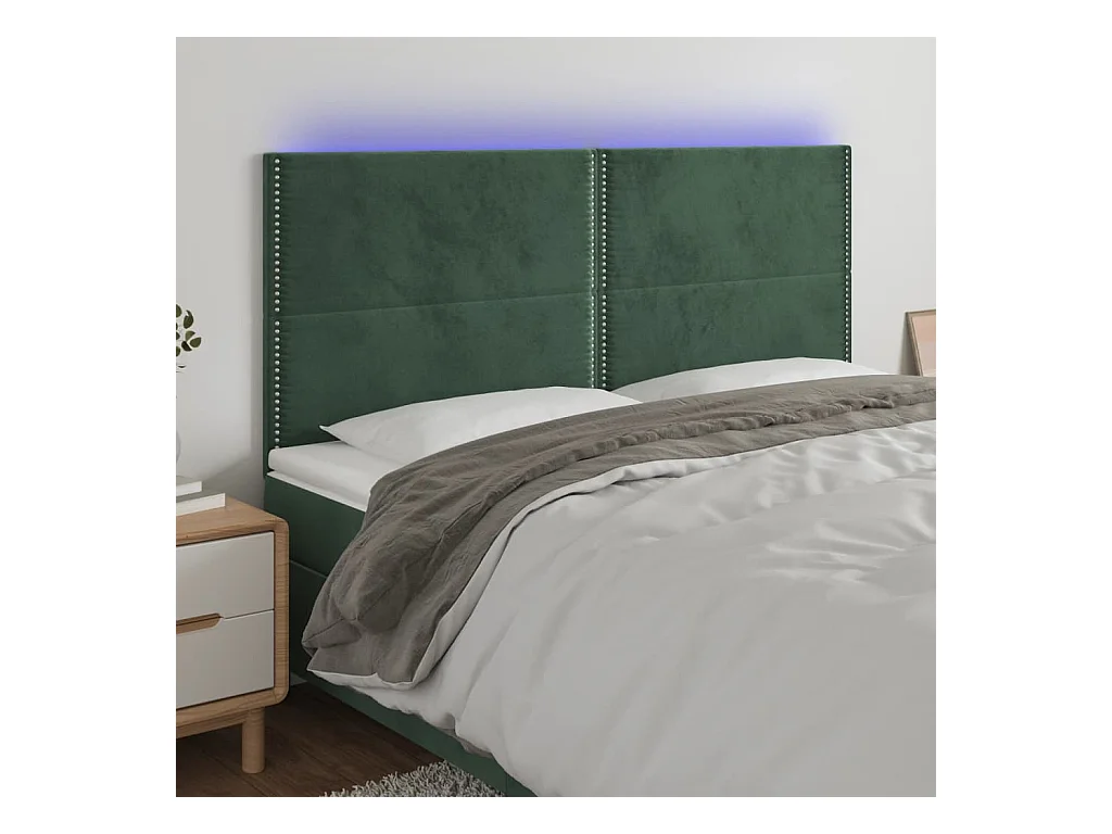 Tête de Lit | Panneau de tête pour lit Moderne à LED Vert foncé 200x5x118/128 cm Velours