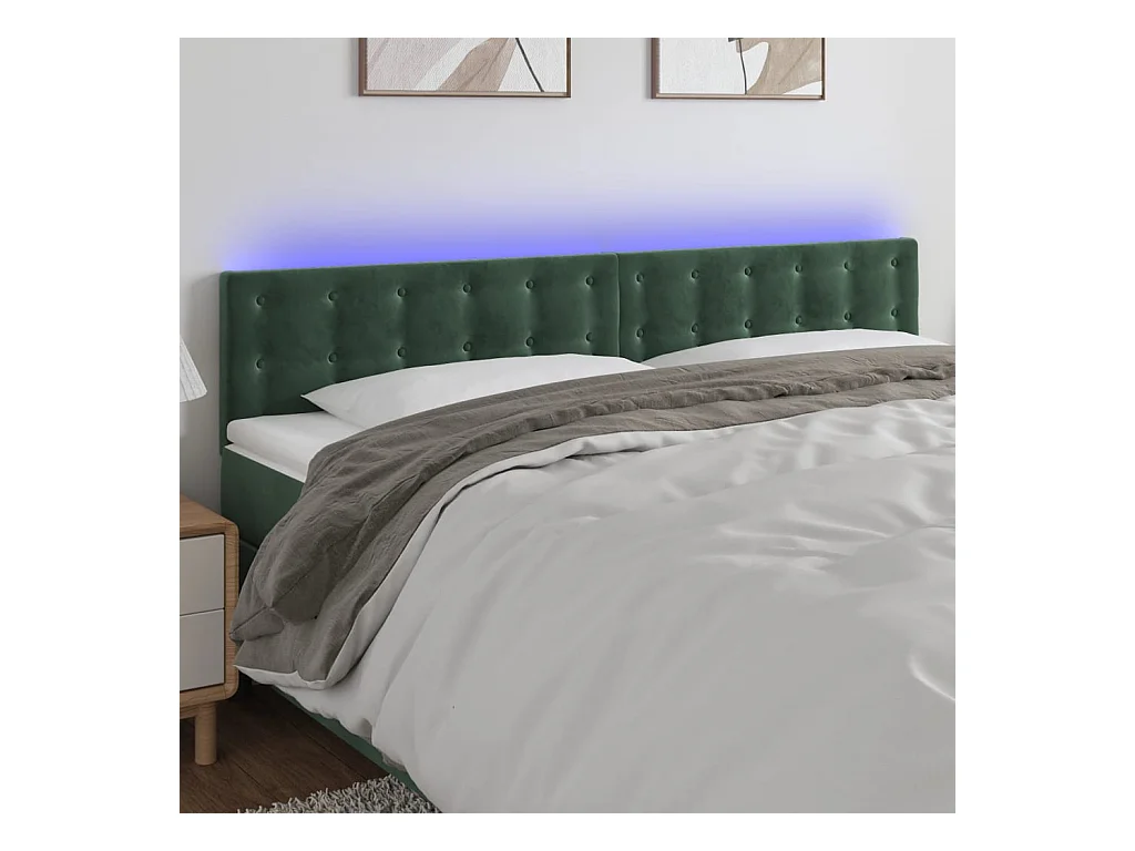Tête de Lit | Panneau de tête pour lit Moderne à LED Vert foncé 200x5x78/88 cm Velours