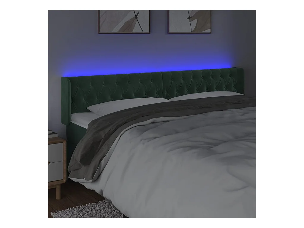 Tête de Lit | Panneau de tête pour lit Moderne à LED Vert foncé 203x16x78/88 cm Velours