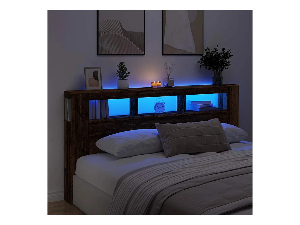Tête de Lit | Panneau de tête pour lit Moderne à LED chêne fumé 180x18,5x103,5cm bois d'ingénierie