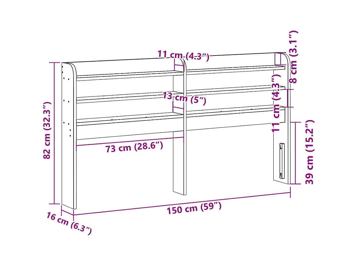 Tête de Lit | Panneau de tête pour lit Moderne avec étagères 150 cm bois massif de pin