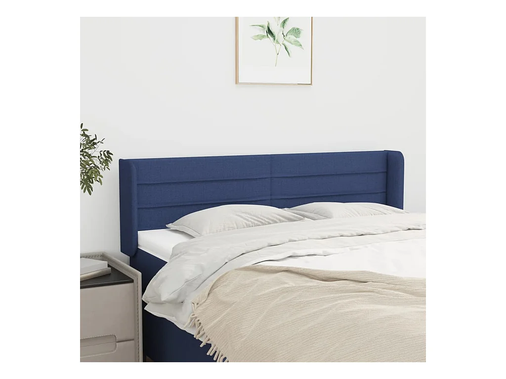 Tête de Lit | Panneau de tête pour lit Moderne avec oreilles Bleu 147x16x78/88 cm Tissu