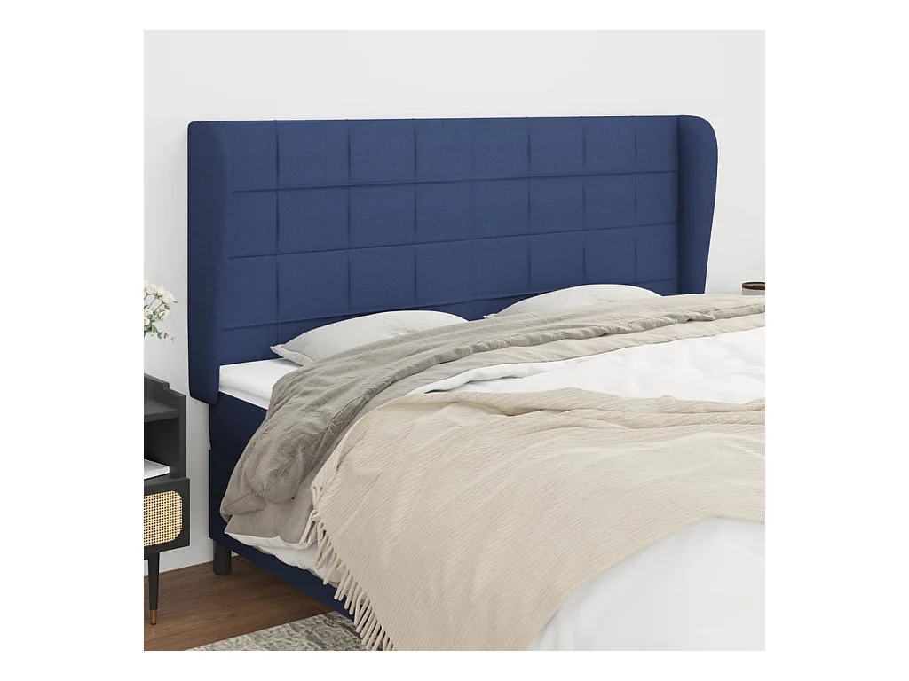 Tête de Lit | Panneau de tête pour lit Moderne avec oreilles Bleu 183x23x118/128 cm Tissu
