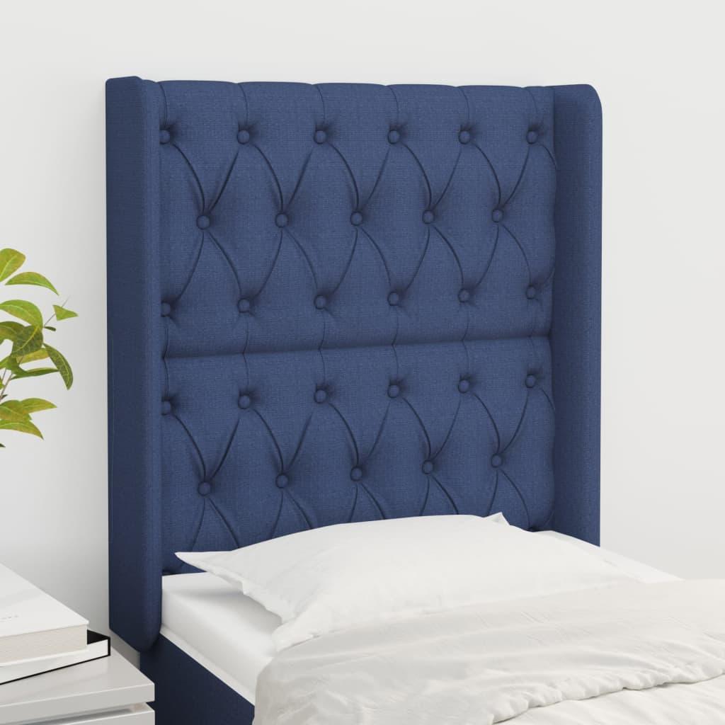 Tête de Lit | Panneau de tête pour lit Moderne avec oreilles Bleu 83x16x118/128 cm Tissu