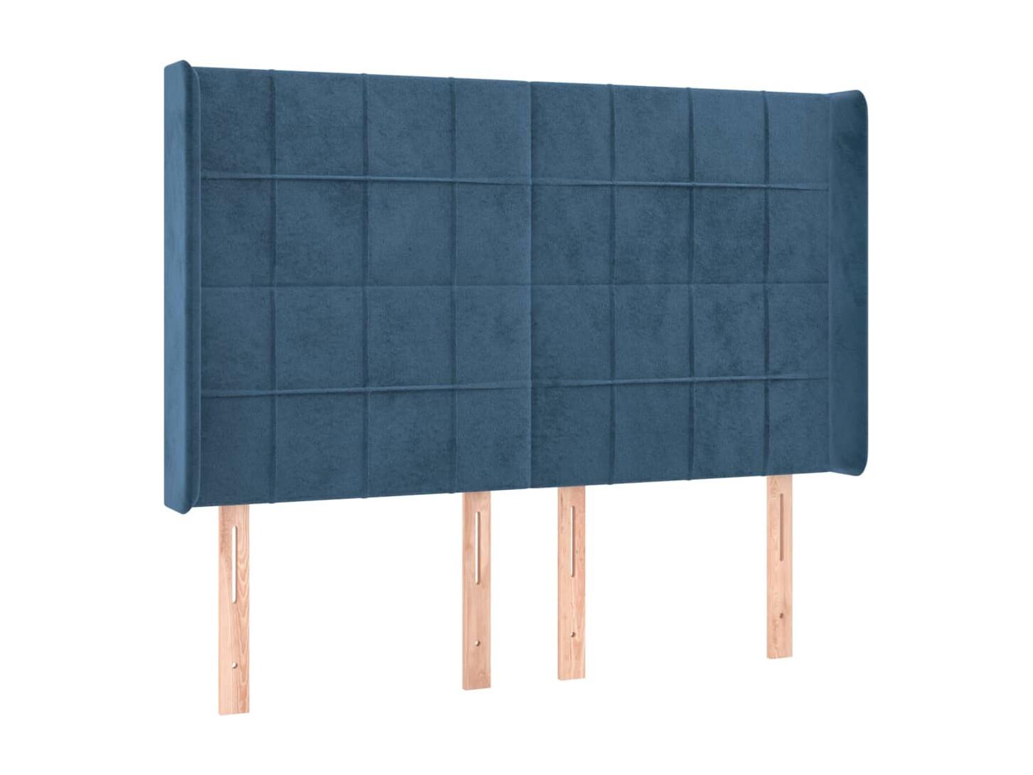 Tête de Lit | Panneau de tête pour lit Moderne avec oreilles Bleu foncé 147x16x118/128 cm Velours