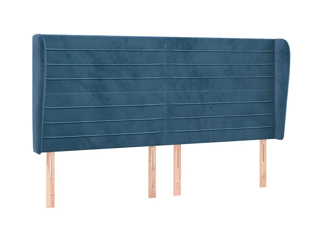 Tête de Lit | Panneau de tête pour lit Moderne avec oreilles Bleu foncé 183x23x118/128 cm Velours