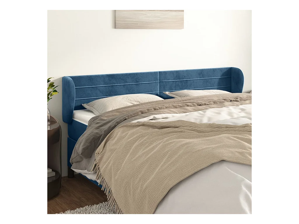 Tête de Lit | Panneau de tête pour lit Moderne avec oreilles Bleu foncé 183x23x78/88 cm Velours