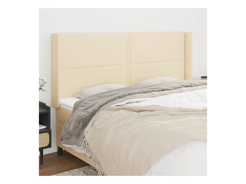 Tête de Lit | Panneau de tête pour lit Moderne avec oreilles Crème 183x16x118/128 cm Tissu