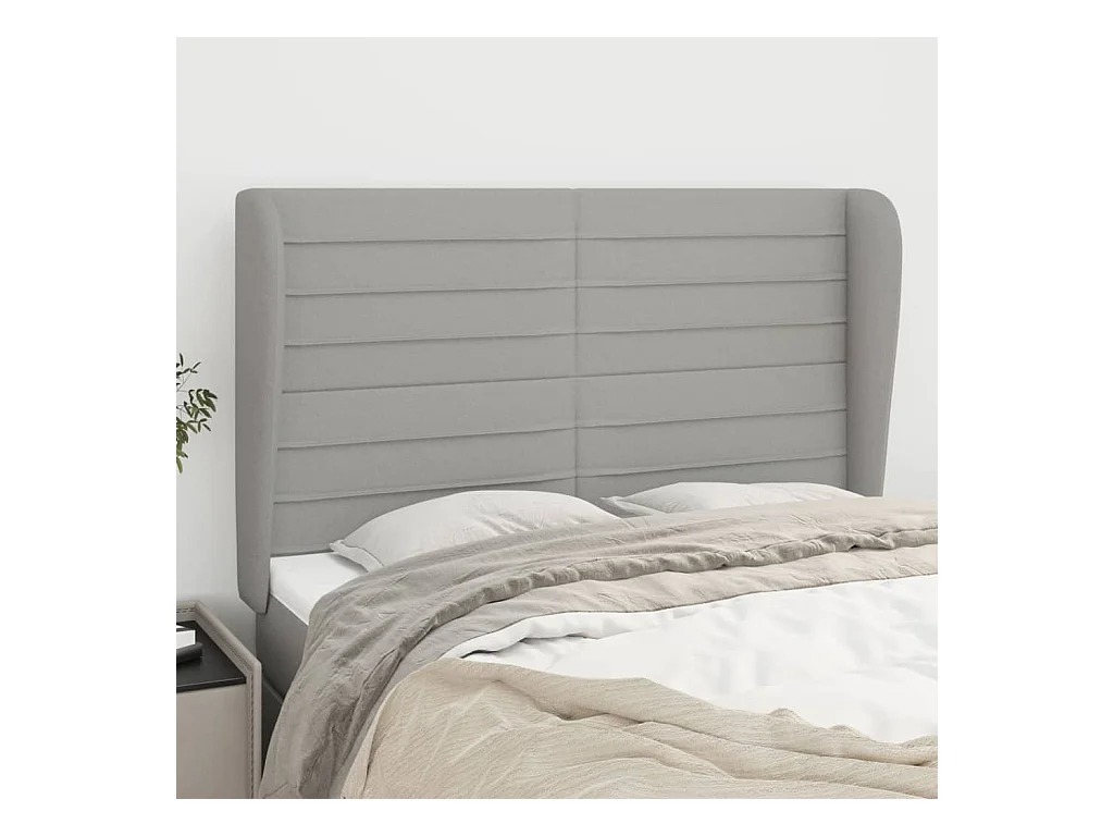Tête de Lit | Panneau de tête pour lit Moderne avec oreilles Gris clair 147x23x118/128 cm Tissu