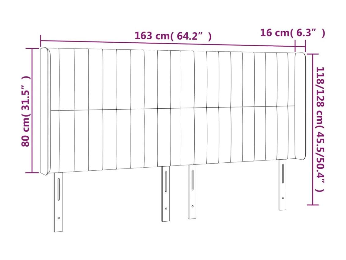 Tête de Lit | Panneau de tête pour lit Moderne à LED Gris foncé 163x16x118/128 cm Velours