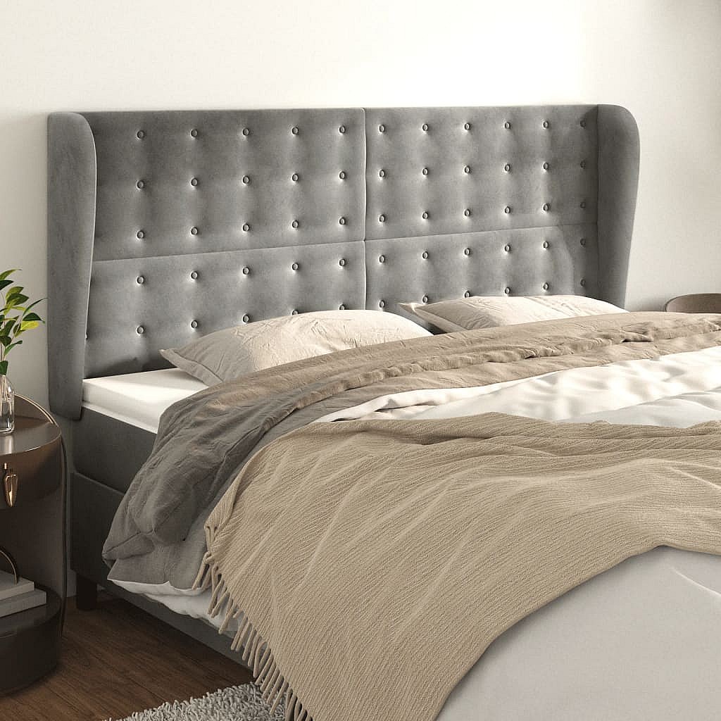 Tête de Lit | Panneau de tête pour lit Moderne avec oreilles Gris clair 163x23x118/128 cm Velours