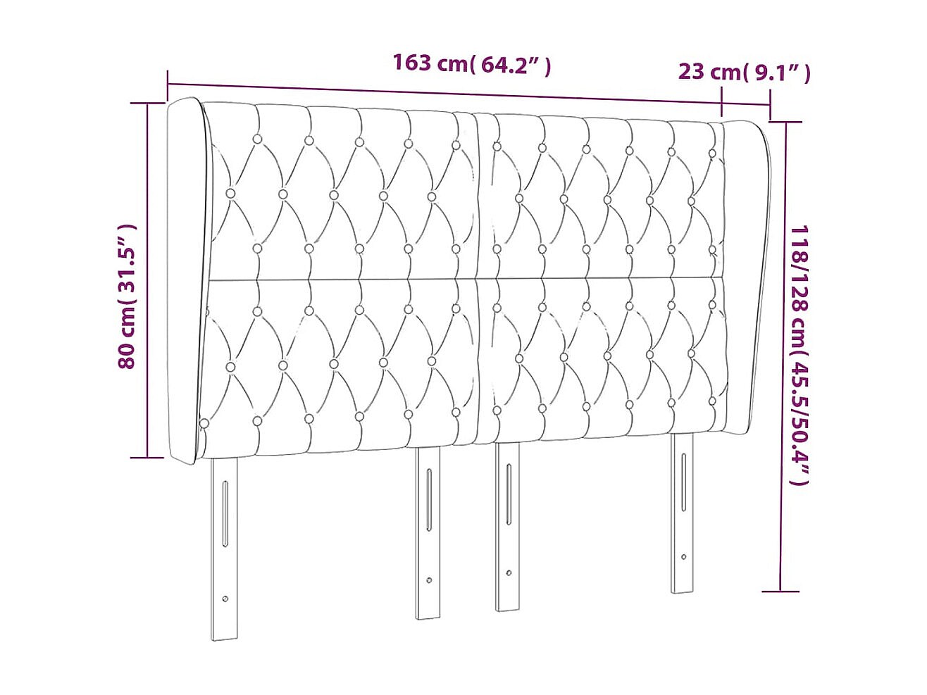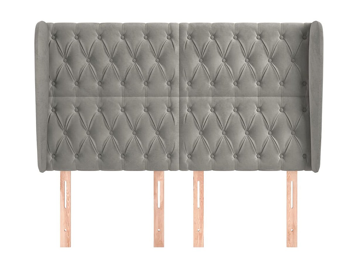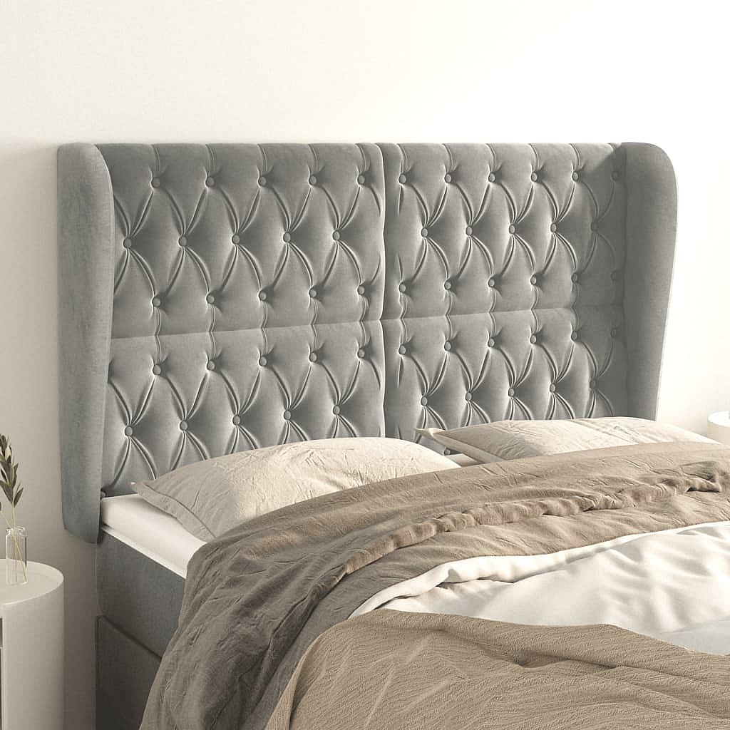 Tête de Lit | Panneau de tête pour lit Moderne avec oreilles Gris clair 163x23x118/128 cm Velours