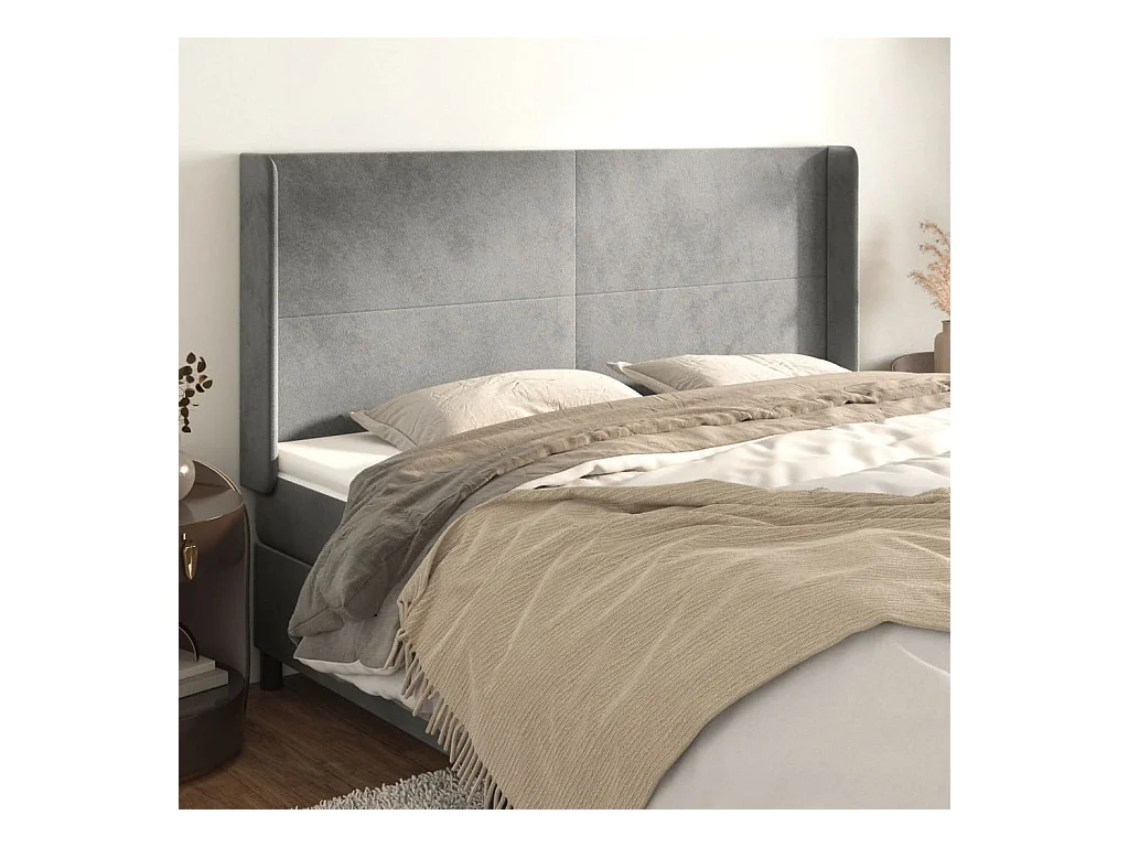 Tête de Lit | Panneau de tête pour lit Moderne avec oreilles Gris clair 183x16x118/128 cm Velours