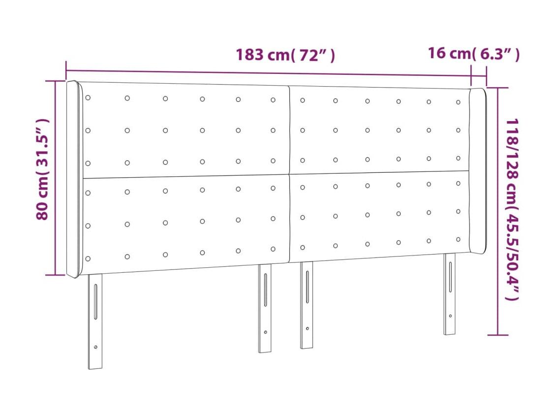 Tête de Lit | Panneau de tête pour lit Moderne avec oreilles Gris clair 183x16x118/128 cm Velours