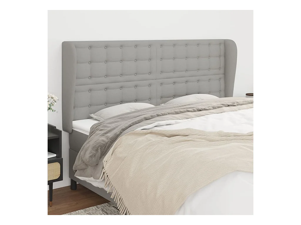 Tête de Lit | Panneau de tête pour lit Moderne avec oreilles Gris clair 203x23x118/128 cm Tissu