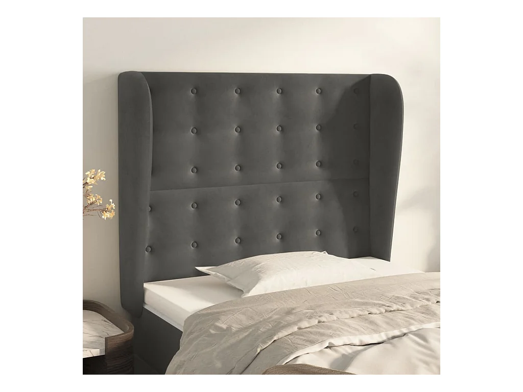 Tête de Lit | Panneau de tête pour lit Moderne avec oreilles Gris foncé 103x23x118/128 cm Velours