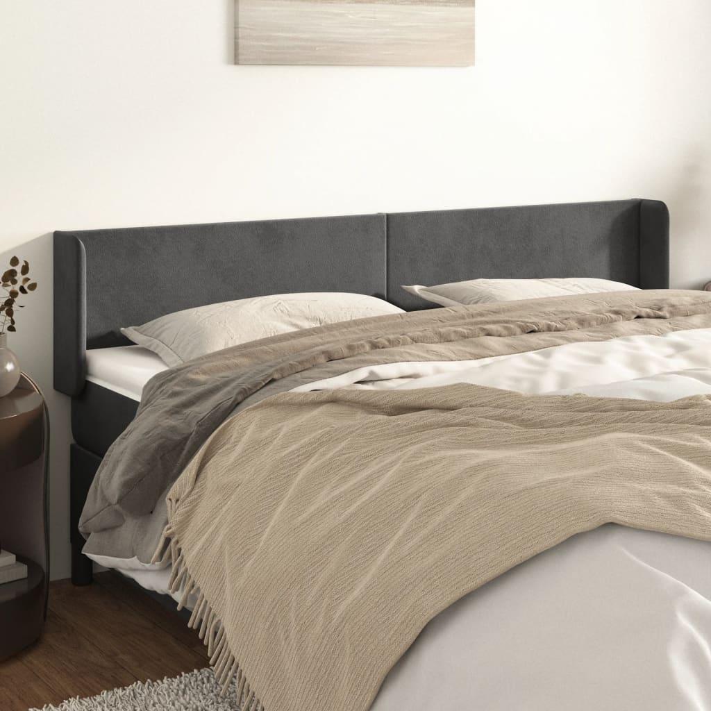 Tête de Lit | Panneau de tête pour lit Moderne avec oreilles Gris foncé 163x16x78/88 cm Velours