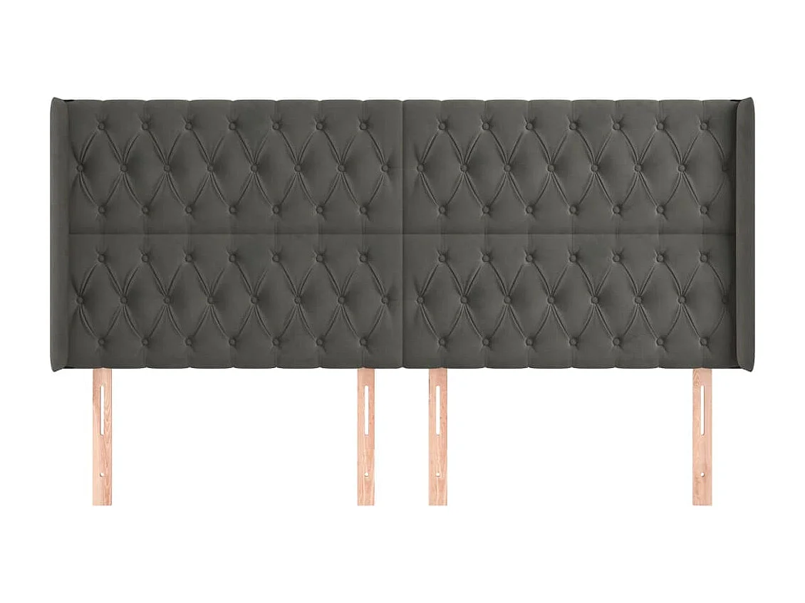 Tête de Lit | Panneau de tête pour lit Moderne avec oreilles Gris foncé 183x16x118/128 cm Velours