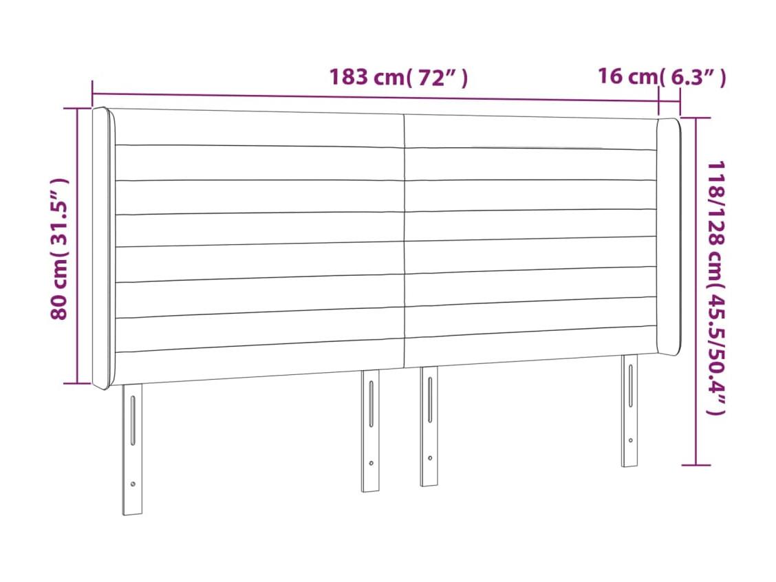 Tête de Lit | Panneau de tête pour lit Moderne avec oreilles Gris foncé 183x16x118/128 cm Velours