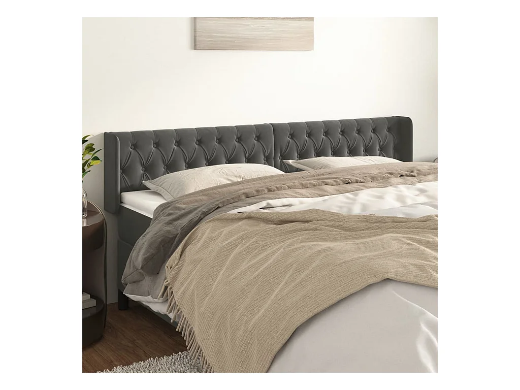Tête de Lit | Panneau de tête pour lit Moderne avec oreilles Gris foncé 183x16x78/88 cm Velours