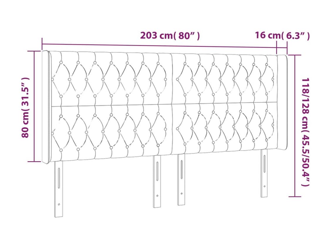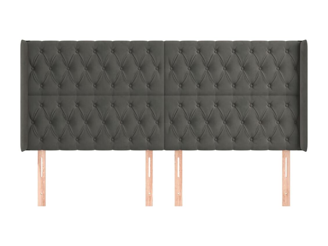Tête de Lit | Panneau de tête pour lit Moderne avec oreilles Gris foncé 203x16x118/128 cm Velours