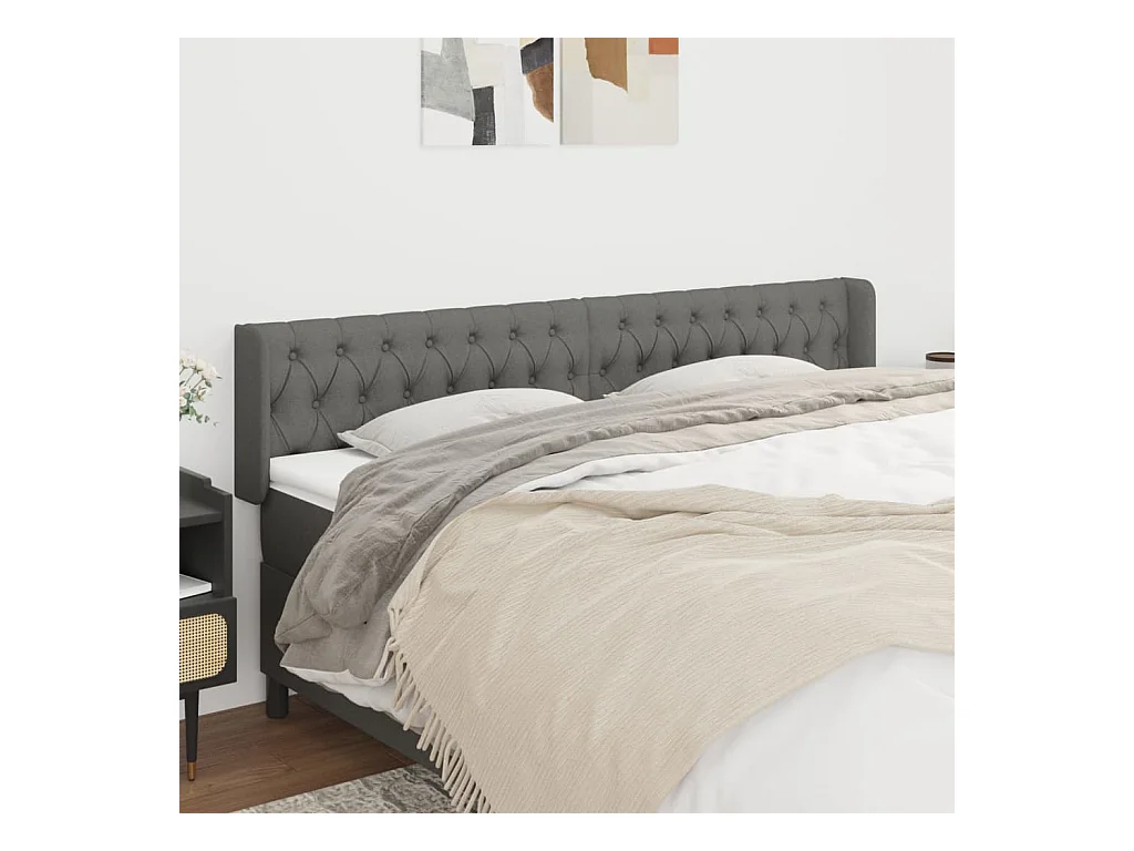 Tête de Lit | Panneau de tête pour lit Moderne avec oreilles Gris foncé 203x16x78/88 cm Tissu