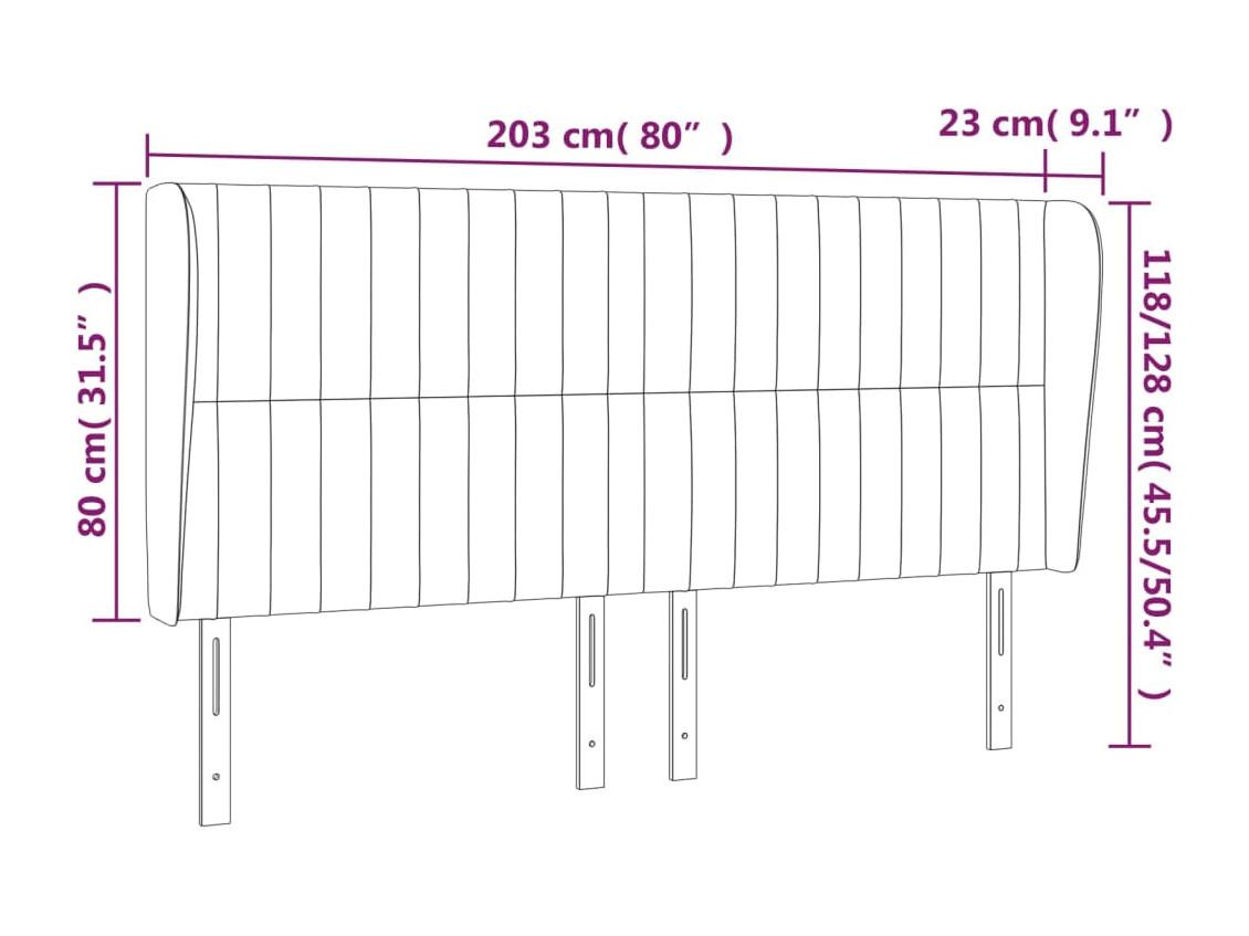 Tête de Lit | Panneau de tête pour lit Moderne avec oreilles Gris foncé 203x23x118/128 cm Velours