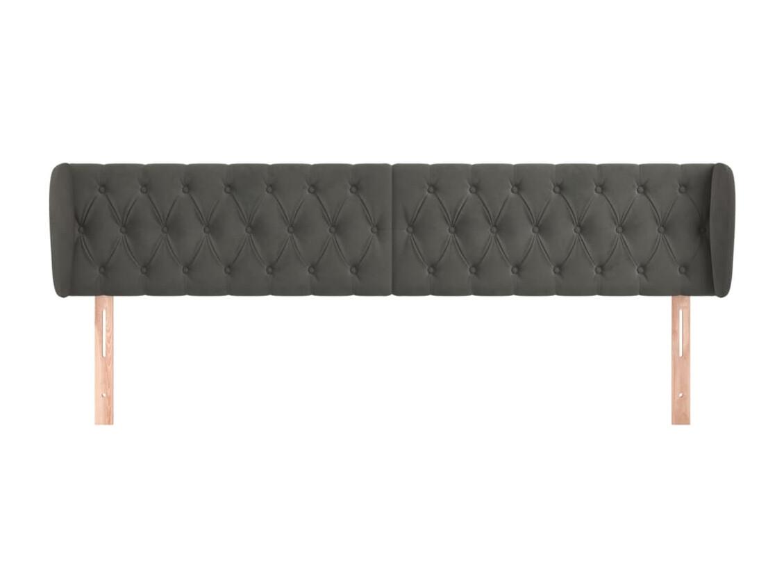 Tête de Lit | Panneau de tête pour lit Moderne avec oreilles Gris foncé 203x23x118/128 cm Velours