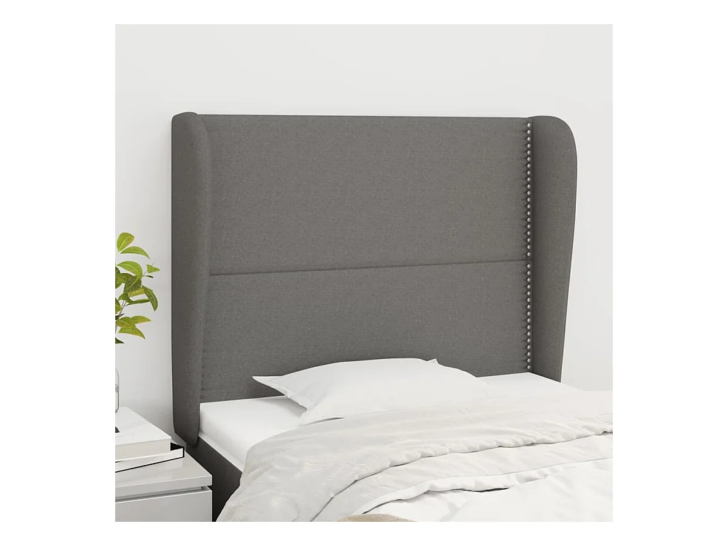 Tête de Lit | Panneau de tête pour lit Moderne avec oreilles Gris foncé 83x23x118/128 cm Tissu
